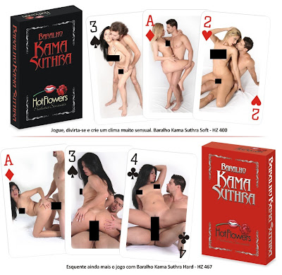 Baralho Kama Sutra com fotos reais, com 52 fotos originais do livro KAMA SUTRA, com Nipes e números, onde você pode jogar qualquer jogo que não precise de coringas.